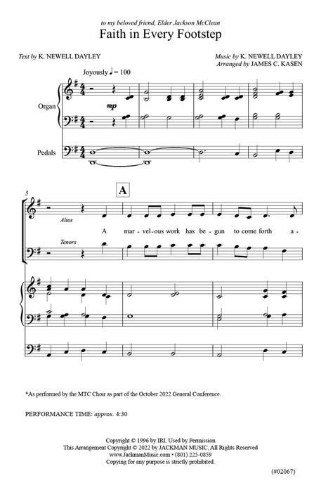 Faith in Every Footstep - SATB - Kasen