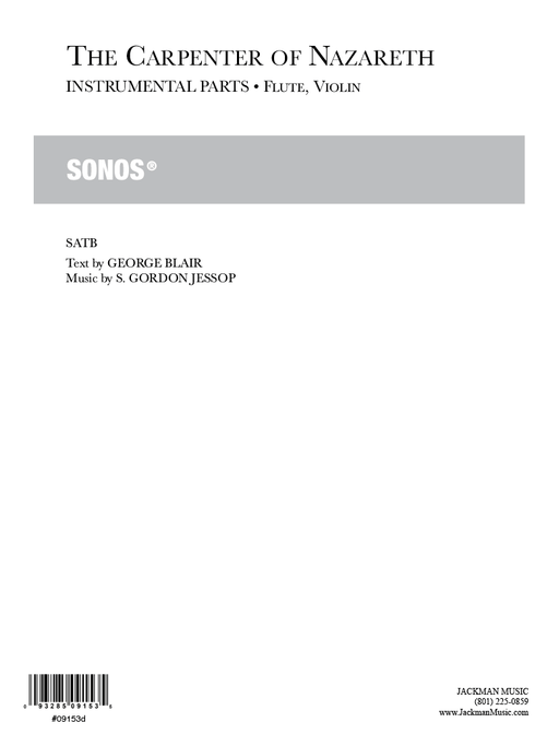 09153Instrumental packet to accompany the original anthem "The Carpenter of Nazareth" - SATB (#01557), packet includes parts for flute and violin. Co...
