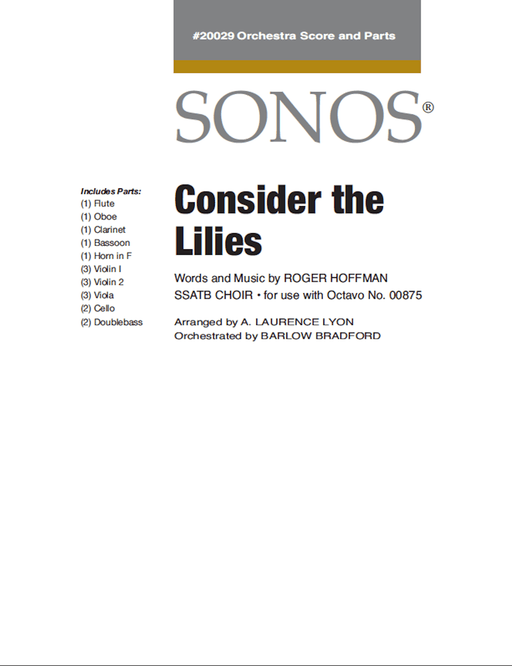 20029Score and orchestra parts to accompany "Consider the Lilies" - SATB (#00875). This piece has been performed by The Tabernacle Choir at Temple Squar...