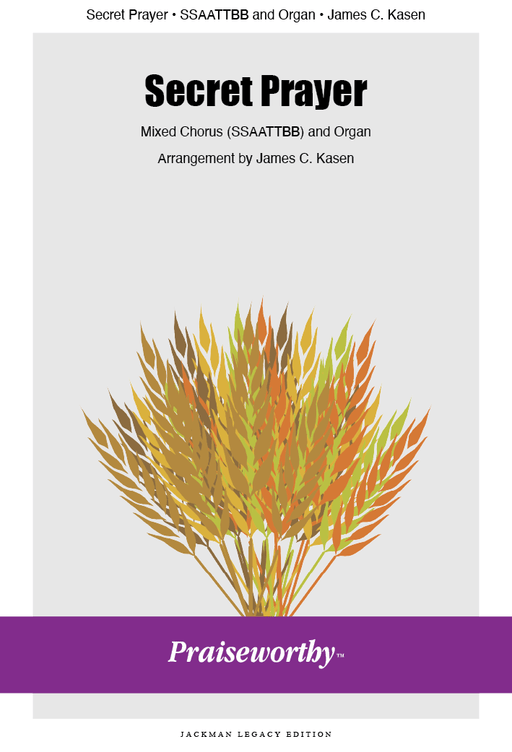 00049Expressive arrangement for mixed chorus (SSAATTB) and organ, gaining momentum and fervor in voice and flowing organ accompaniment, gradually encorp...