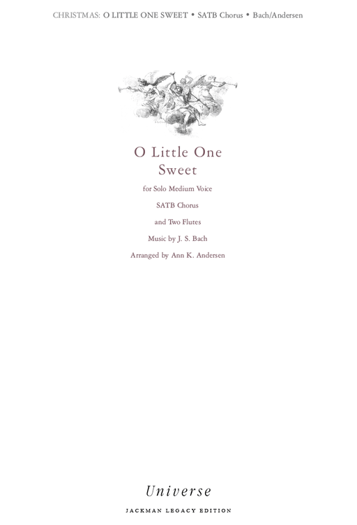 00341Tender Christmas arrangement for mixed chorus (SATB), soloist (or children), and 2 flutes, with music by J. S. Bach: "O little one sweet, O little...