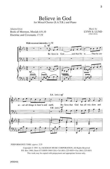 Believe in God - SATB