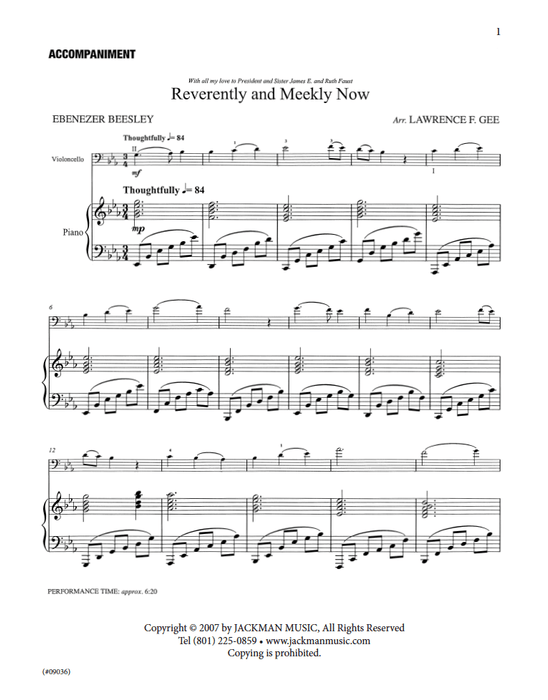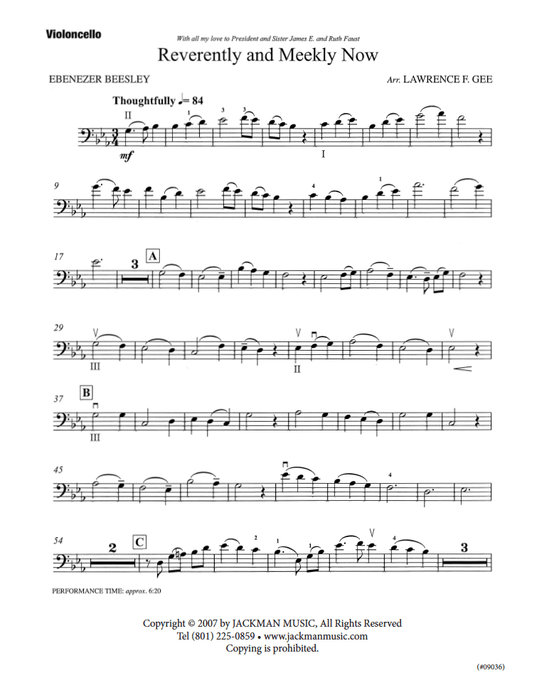 Reverently and Meekly Now - Cello Solo