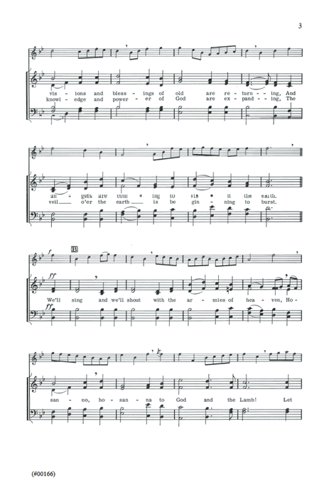 Vigorous hymn arrangement with traditional words by William W. Phelps, arranged for mixed chorus (SATB), and organ. Optional accompaniment parts available separately, trumpet descant (#09003) and brass choir (#09159).